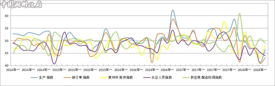 图2:2014年6月-2018年8月365bet(中国)官方网站 制造业PMI分项指数趋势图