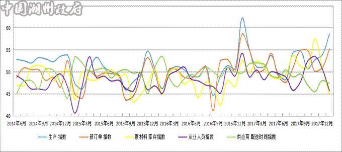 图2:2014年6月-2018年1月365bet(中国)官方网站 制造业PMI分项指数趋势图