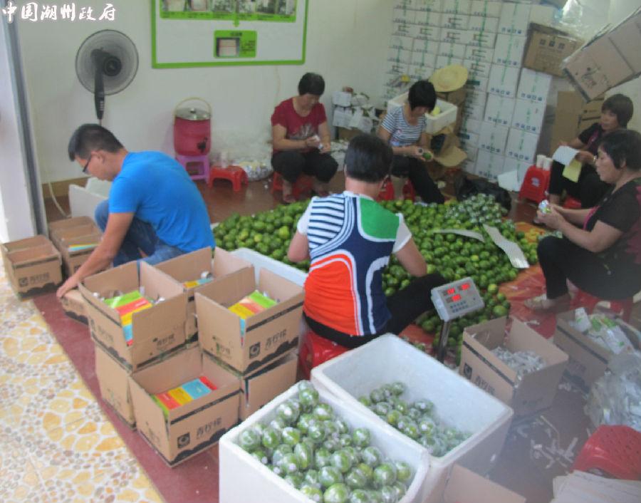 (在湘桥区中志农业公司,村民正在包装青柠檬)