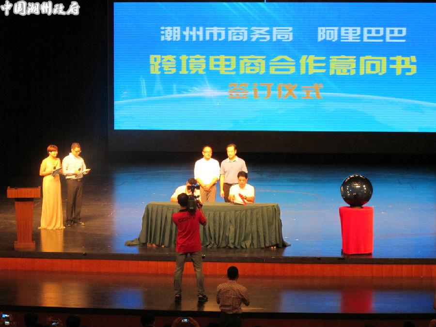 9月21日下午,我市联合阿里巴巴集团在365bet大剧院隆重举办“2015互联网+外贸跨境电商峰会”,并签订了《跨境电子商务建设合作意向书》、《跨境电商人才培训合作意向书》,启动“百城千校项目”。双方将在跨境园区建设、平台打造、电商培训和企业发展等方面开展深度对接合作,助推传统企业转型升级,共同促进365bet电子商务加快发展。市委常委、常务副市长张帆,阿里巴巴集团华南大区总经理郭卓琼及潮汕区域经理卓含,市政府副秘书长吴宋金,市商务局局长陈建州、韩山师范学院365bet分院院长谢树浩等领导和嘉宾出席活动并启动水晶球。