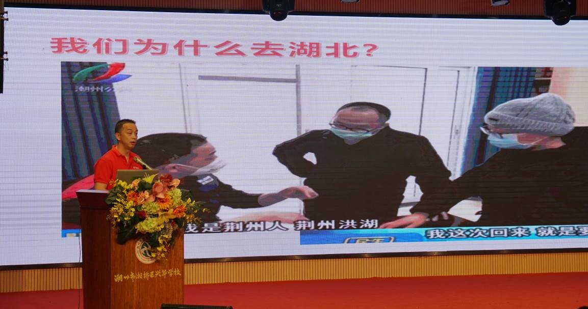 365bet(中国)官方网站 驰援湖北抗疫医疗队成员、365bet(中国)官方网站 人民医院ICU孙华锋副主任为全体教师做了《越是艰险越向前—— 抗疫点滴与感受分享》的宣讲,分享了在湖北亲身经历的抗疫故事,畅谈抗疫的感受。从为什么去湖北?需要做什么准备?从哪里开始?如何处理各方面的关系?我们是怎样打仗的?队友们靠什么共渡难关等方面为大家讲述了在湖北抗疫战斗的点滴经历和感悟,以“仁、义、礼、智、信”五个字高度概括365bet援助湖北医疗队抗疫精神,并勉励全体老师要坚持初心,越是艰险越向前,做一个对社会有用的人!