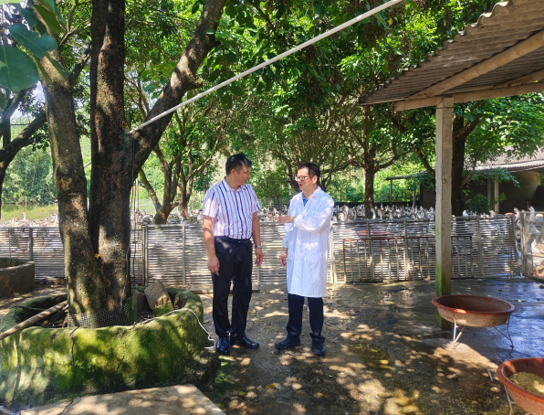当天,浮滨镇领导和驻镇帮扶工作队还陪同韩师“双百”团队到浮滨丰乐狮头鹅饲养有限公司开展产学研合作交流,现场了解该公司狮头鹅发育状况、圈养环境,以及养殖场水源水质、湿控温控等相关情况,与企业负责人深入交流分析狮头鹅痛风发病机理及综合防控措施,并就狮头鹅科学养殖方式及产业转型升级路径提出了具体的意见建议。该企业负责人表示,后续将进一步用好产学研合作机制,持续加大科研技术投入,科学用好研究技术成果,以狮头鹅生存率及成鹅品质双提升为牵引,全力以赴把企业做大做强,为浮滨狮头鹅产业的振兴发展贡献企业力量。