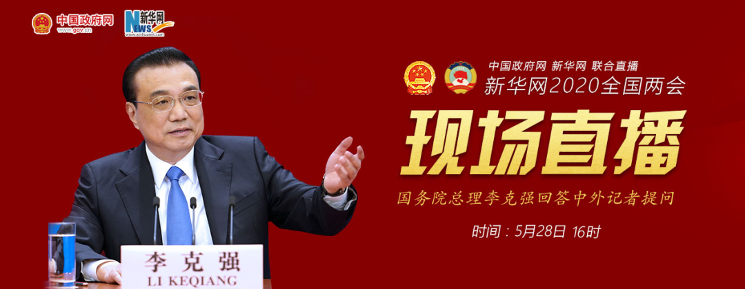 2020年5月28日(星期四)下午十三届全国人大三次会议闭幕后,国务院总理李克强在人民大会堂三楼金色大厅出席记者会并回答中外记者提问。为有效防控疫情,共同维护公共卫生与健康,记者会采用网络视频形式进行。新华网、中国政府网进行现场直播。
