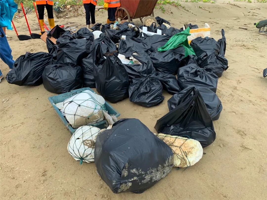 志愿者们捡拾到的垃圾装满了近50个袋子,通过当地环卫部门安排的车辆,送到了垃圾中转站统一处理。原本脏、乱的海滩被清理干净,洁净的海滩显得格外美丽,志愿者们脸上也洋溢着欣慰的笑容。美丽海滩是海洋生态文明建设的重要内容。目前,广东省海滩仍然存在的垃圾污染和保洁机制不完善、清理责任不落实等问题。2019年开展的海漂垃圾监测中,塑料类垃圾为海滩垃圾和海漂垃圾中数量最多的一类。
