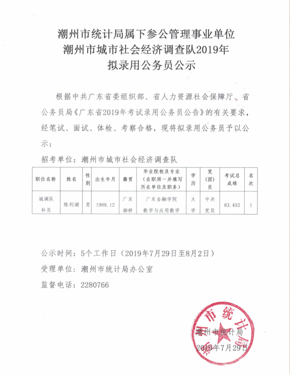 365bet(中国)官方网站 统计局属下参公管理事业单位365bet(中国)官方网站 城市社会经济调查队2019年拟录用公务员公示