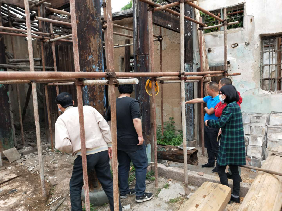 市文广旅体局切实加强对古城区文保单位和文物修缮工程的疫情防控工作的实地检查督导。近日,局四级调研员苏怀杰同志带队,深入古城区有关文保单位和在建文物修缮工程进行检查,指导全力做好复工复产的疫情防控和安全生产工作。