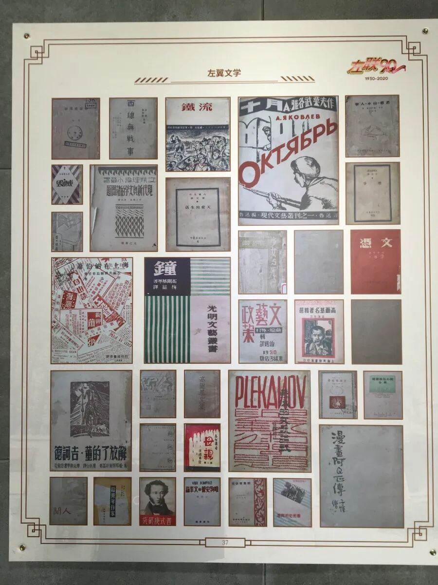 此次展览分为四个部分,以图片为主,配合介绍“左联”历史的动画与视频。其中,第一部分“左翼文化策源地”介绍左联成立的背景及随后展开的左翼文化运动;第二部分为“前驱的血、黑夜的光”,讲述“白色恐怖”下,左翼文化斗士们写下的血色篇章;第三部分“红色文化星火燎原”,集中展示了左翼文化界在文化、美术、戏剧、电影等诸多领域的成果;第四部分为“红色经典灿烂篇章”,讲述中国左翼文艺运动,成为20世纪中国影响深远的重大文化运动之一。