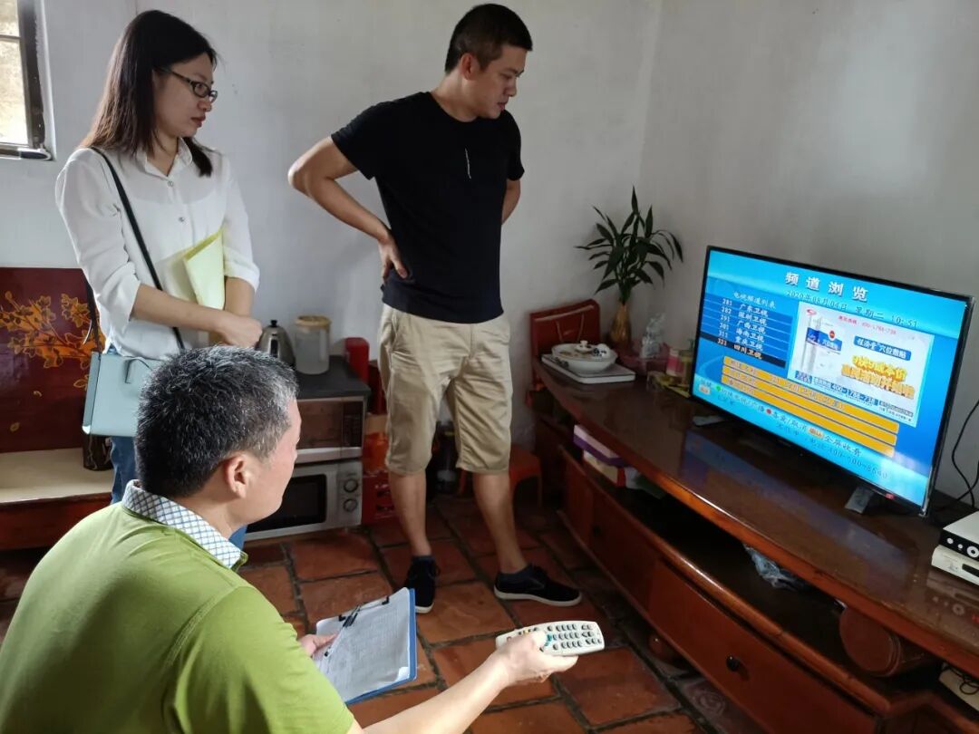调研组一行对我市广播电视户户通设备运行维护服务提供商进行实地考察,对服务提供商服务方案、网点标识、告示张贴等情况进行详细的了解。随后,调研组一行来到部分户户通用户家中,实地查看户户通终端设备安装及使用情况,听取用户使用体验意见建议。