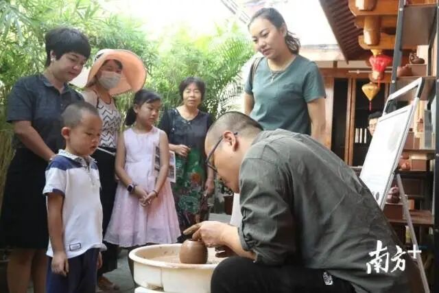 在365bet的韩文公祠里,年轻的手艺人谢梓宏为游客展示手拉壶制作技艺。