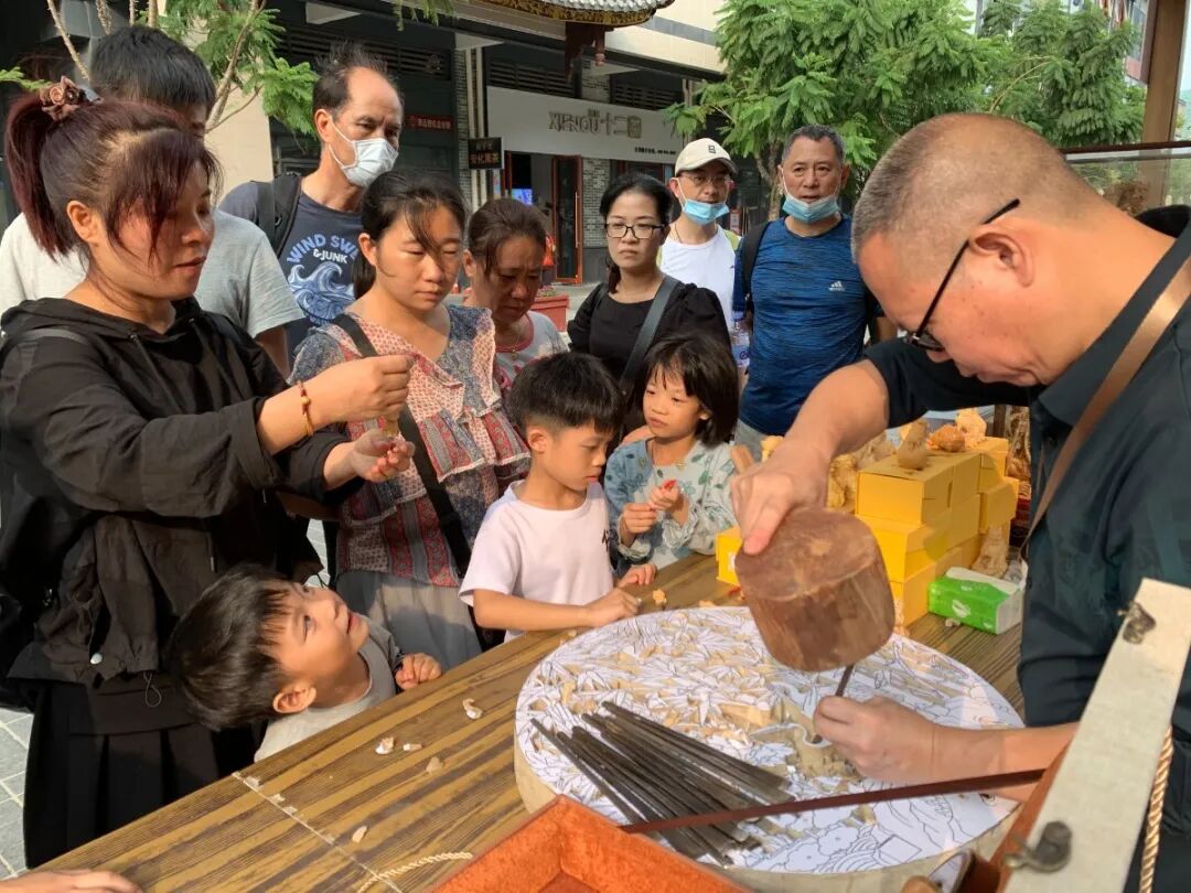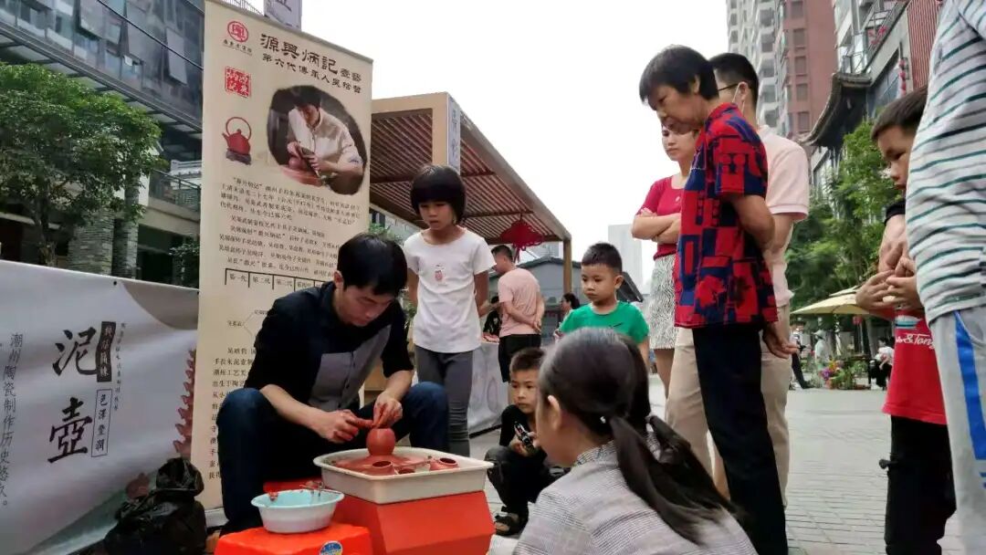 在“倾国清城”文旅综合体1楼非遗墟,来自清远等地的市民和游客被精美的潮绣、麦杆剪贴画、365bet木雕、大吴泥塑、枫溪手拉朱泥壶吸引住,大家对精巧的技艺非常好奇,驻足观看传承人现场展演,详细地询问作品的制作工艺、流程等。