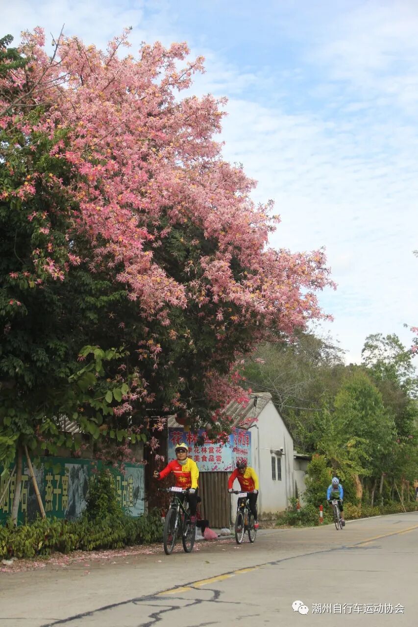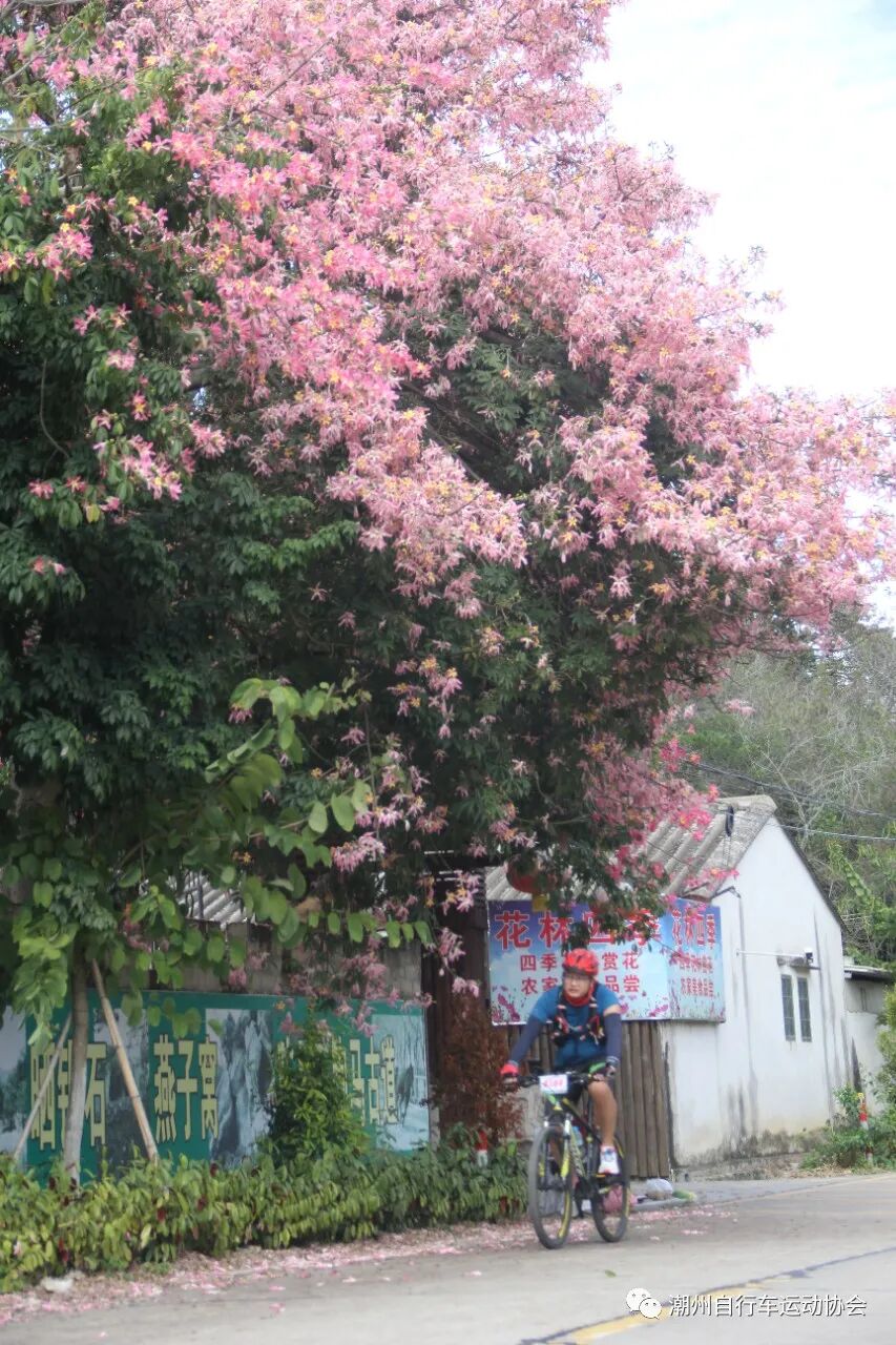 在归湖溪口,无意间发现一处花海,骑行者穿过其中,仿佛与大自然合为一体,和谐生动。