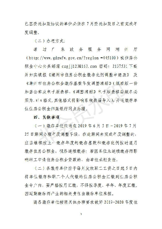 关于调整2019-2020年度住房公积金缴存基数和比例的通知(潮公积金﹝2019﹞16号)