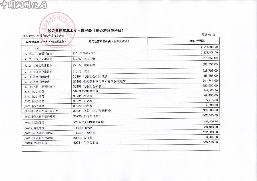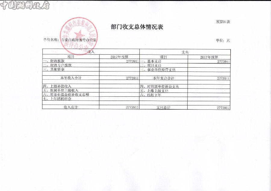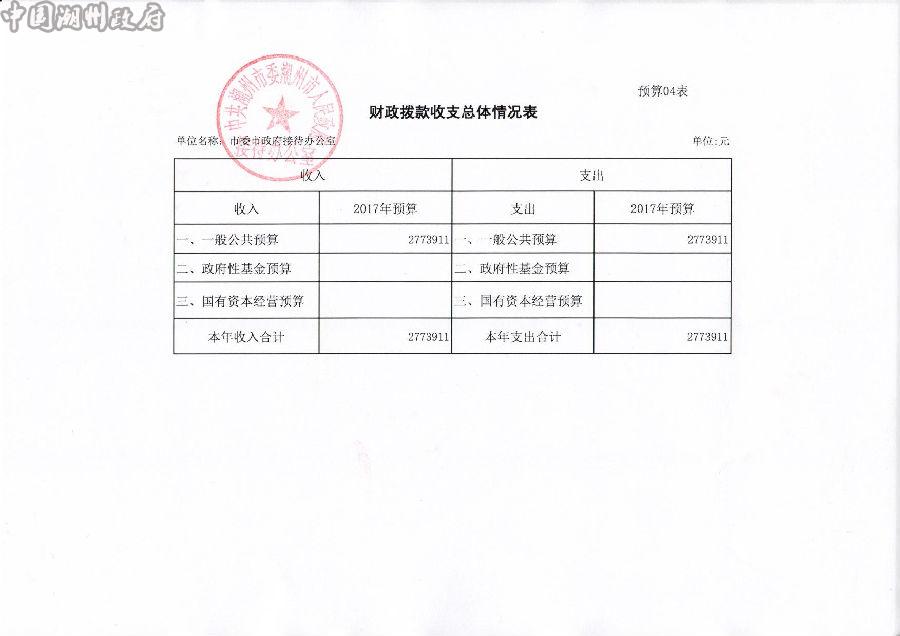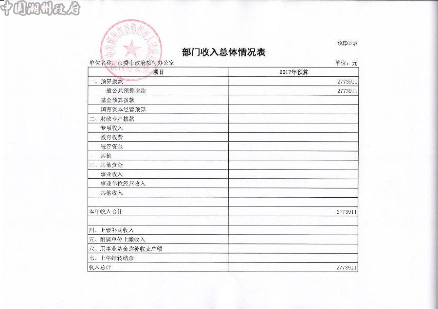 2017年度市委市政府接待办公室部门预算公开表(文字说明)