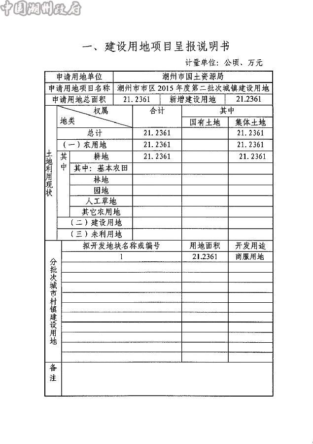 365bet(中国)官方网站 市区2015年度第二批次城镇建设用地“一书三方案”