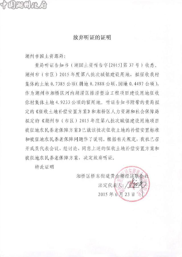 听证告知书(潮国土听证告字【2015】37号)