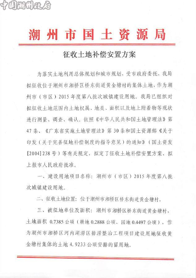 365bet(中国)官方网站 市区2015年度第八批次城镇建设用地(征地土地补偿安置方案)