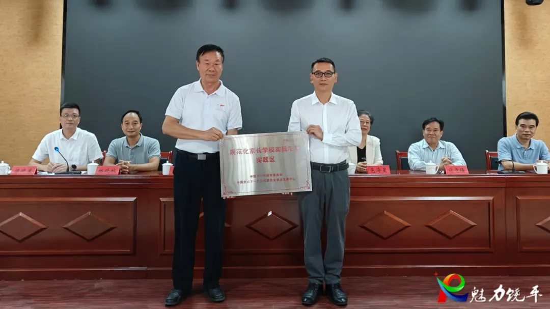 会议现场,我县被授予全国规范化家长学校实践活动实践区牌匾。